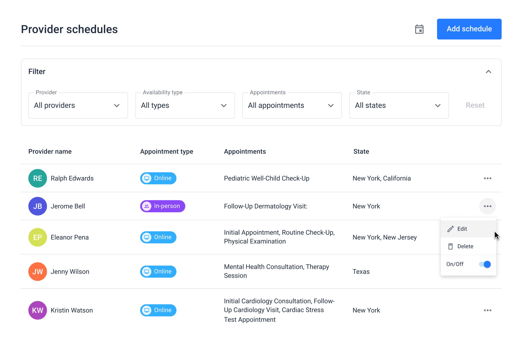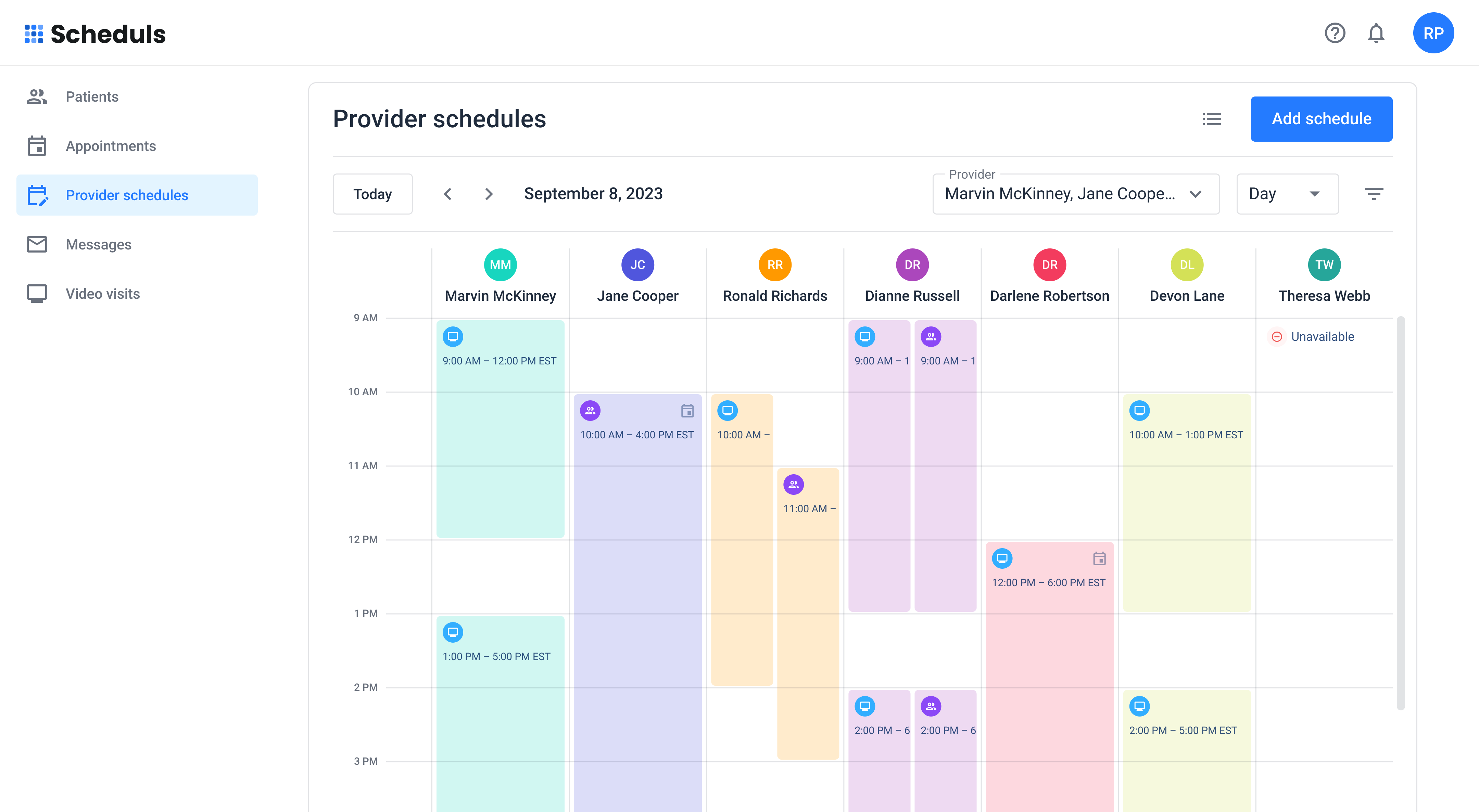 All provider schedules in one place for easy management