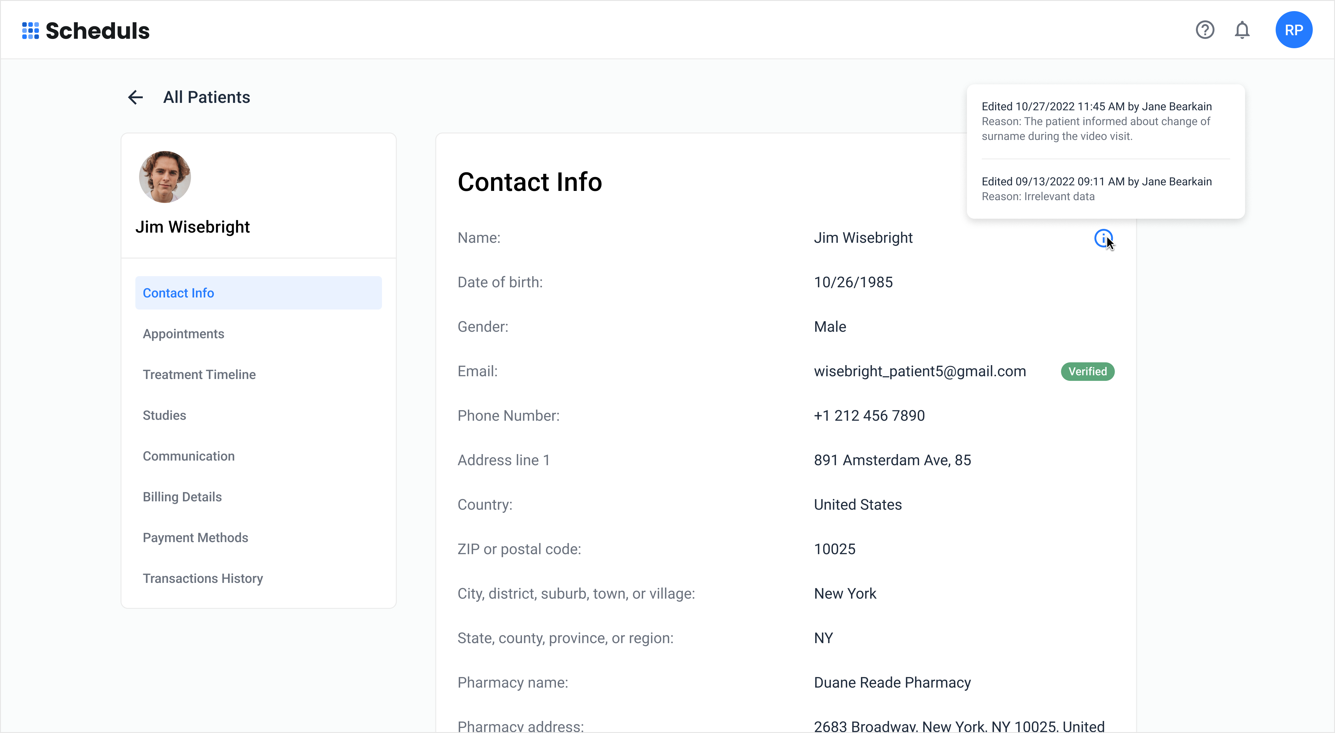 Tracking changes and updates to patient information.